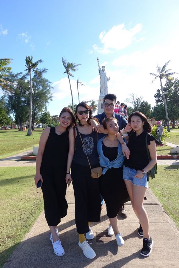一下飛機後再入住前有個贈送的市區導覽行程,導遊帶我們一行人來到關島自由女神像,這裡像是一個小小的紀念公園,在海邊聽著海浪拍打的聲音,天氣很好,也有著名的自由女神像,雖然只有紐約的兩百分之一,好像是當初雙方紀念友情互贈的,當然也要在這著名的景點前拍張照囉!