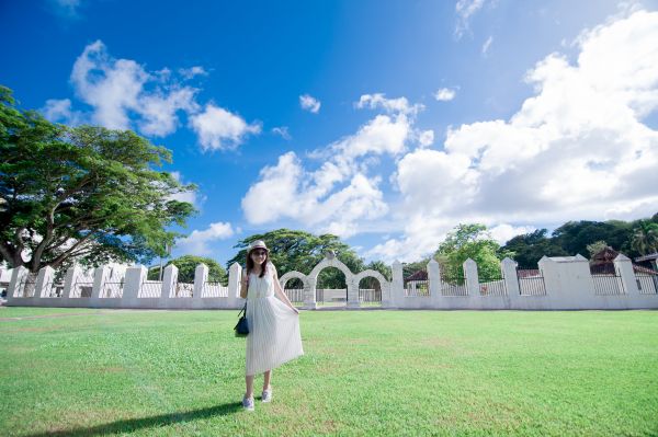 第二天出關後,我們就讓大洋旅行社的導遊接走,開始了關島市區觀光行程。自由女神是我們參訪的第一個景點,給三顆星的原因是:它真的非常迷你,這個景點與我行前出發在部落客遊記或旅遊書看到的印象真的差好多,老實說,真的蠻錯愕的⋯大家可以親身體驗看看它的迷你囉