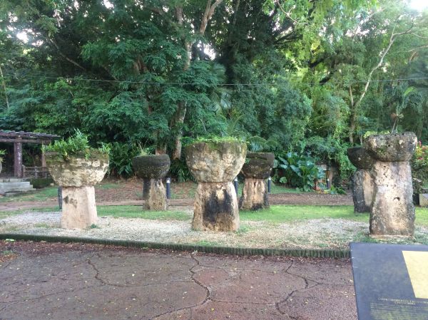 拉提石公園並不大,聽導遊解說完,看這八塊石柱,就是傳達一些當年關島的歷史足跡也聽說現在關島的查莫洛人還是有使用石柱來搭建屋子,經過稍不注意還不知道是個公園!!