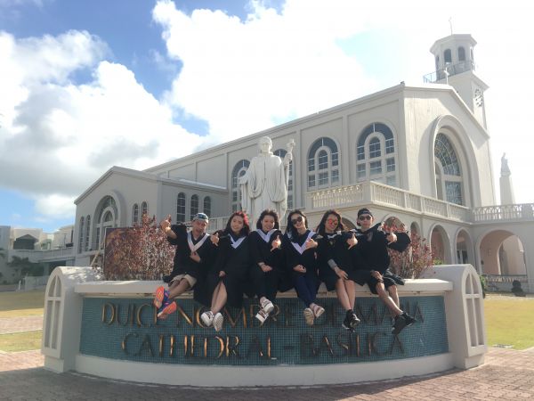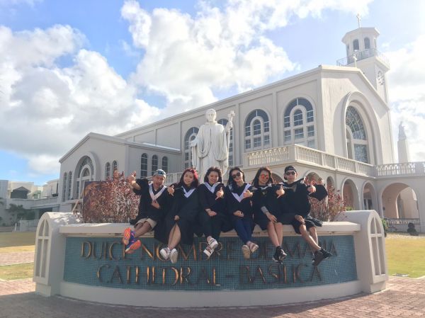 這是第一天導遊帶我們市區觀光的地點之一,因為我們是來畢業旅行的,所以不免俗到哪裡都要來個學士照囉!我們來的這天剛好沒有開放參觀,所以就算我們想付門票進去也沒辦法,只好一群人在外面穿著學士服拍照乾過癮,但這也是來到關島必要拍照打卡的地點唷!