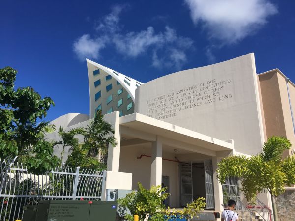 關島博物館蓋得非常漂亮, 雖然我們沒有進去, 就在外面拍拍照, 但也值得了, 插曲是小朋友其實不懂啥建築, 看到博物館前面兩個雕像, 就一直說那兩個人的屁股好大... 笑死我們兩個大人了!