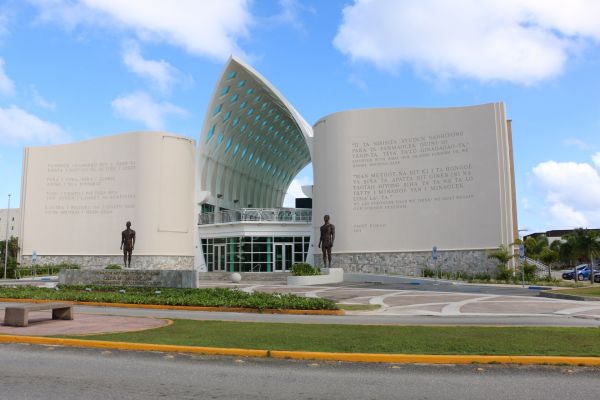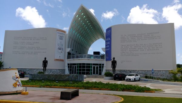 在出發前就聽說在關島結婚的教堂很美,沒想到這座博物館也跟教堂一樣美,擁有大大的橢圓錐形屋頂,如果沒仔細看標誌,還以爲這是一座教堂,據說這是新的地標景點,整體而言室內的採光良好,外牆是潔白色的,正前方面對著教宗紀念碑,左前方則是聖母瑪麗亞教堂,拍張照來留下這美麗的一刻吧!!