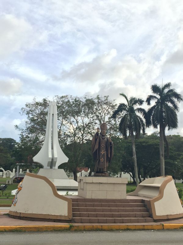 關島博物館外有一若望保祿二世的雕像,據導遊的解說是每12小時會旋轉一周,讓教宗的祝福能360度的放送。 教宗的雕像帶著慈祥的笑容,我看著看著,似乎也能感受到他的祝福聖靈充滿。