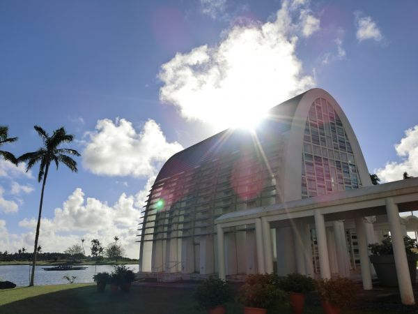 這個教堂是號稱關島第一座的水晶教堂,它的位置在Leo Palace Resort裡頭,平時不會開放入內參觀,通常是要有新人結婚或預演前後才有機會入內拍照!而且這裡也是犀利人妻有來取景的場地,絕對是一個必來的景點