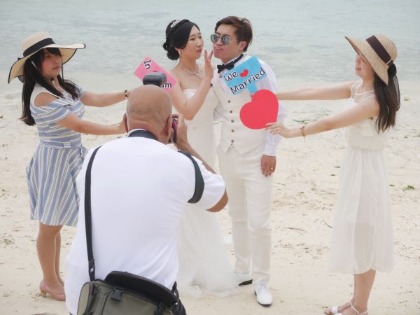 幸福藍星外的沙灘不長,但是拍照起來的效果很不錯,我們婚禮的時間大概是早上10點多,晴朗無雲,十分適合拍照,加上廣闊的海岸線,更是令人心曠神怡。