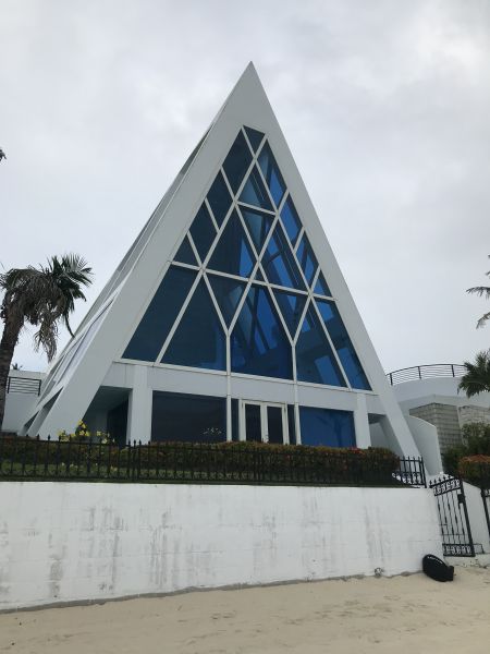 海邊最美的教堂沒有之一,緊鄰杜夢灣海灘,許多佳偶在此走上紅毯,優雅的藍天落地窗,潔淨純白的裝飾,門口一輛輛加長型禮車,非常優雅,很可惜是沒辦法入內參觀的!