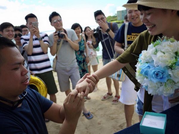 陽光、沙灘、沒有比基尼~只有捧花跟浪漫的求婚告白!