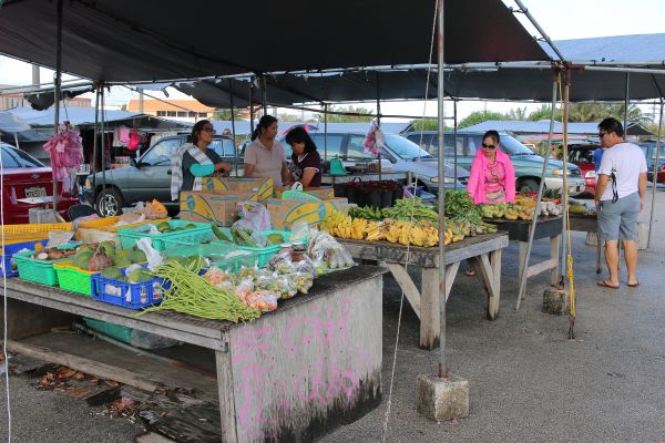 一早熱鬧的市集,大致上和夜市差不多,食物部分主要是燒烤及果汁冰沙,但在早市價位較便宜,另有想要購買I LOVE GUAM T-shirt的朋友,也可以在早市撿便宜,三件USD10(我在K-mart買…一件就8元了)