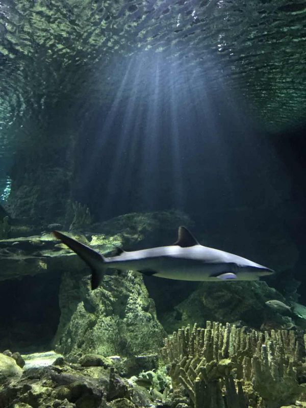 颱風隔一天就來海底隧道,所以整個走道都是我們的伸展台,幾乎沒有其他人。走在隧道中很舒適,魚兒近距離在我們的身旁,隧道中還有擺放椅子,也可以坐著靜靜欣賞,出口出來往上一層,就有他們的餐廳,很不錯吃!(私心推薦魚料理)